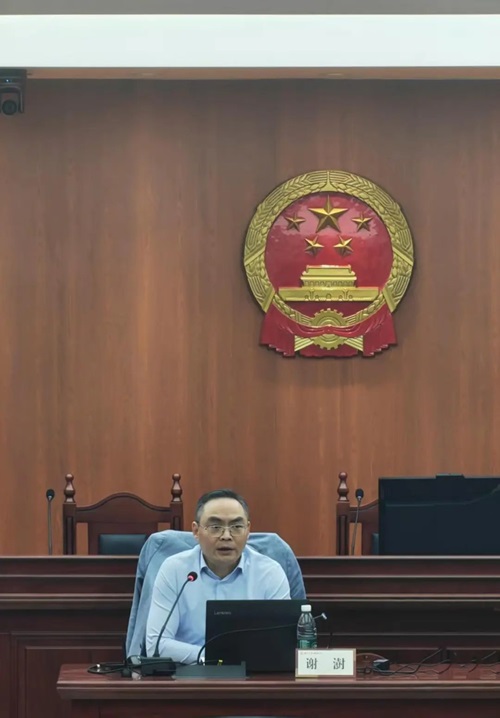 师生到场参加,现场气氛热烈。 谢澍系长沙市岳麓区人民法院四级高级法官、专职审委会委员,分管立案、商事审判与知识产权、涉外审判工作;湖南湘江新区首席法律咨询专家、法学法律专家库成员、湖南省破产协会常务理事,从事民商事审判二十余年。审判执行中代表性工作:全国首例债转股(2003年)、湖南省首例公司风险对赌案件(2018年)、推出全省首家破产府院联动机制、主持湘江新区营商环境填报工作(全国第六名);《供应链金融新业态下涉合同与票据请求权合并诉讼形态的规则构建——兼谈通过诉讼模式调规范和引导新业态》获全国法院第三十四届学术讨论会二等奖,全省一等奖。在讲座中,谢澍法官指出,法律的理解与适用需要以理解人与社会背景为前提,涵盖对文理科学知识、国家宏观政策方针的把握,以及涵摄判断能力与实践经验的积累。此次讲座为广大法学生明确了在校学习的方向,激励着他们不断充实自我,迎接未来的挑战。