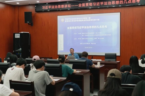 特聘教授、博士生导师,第十三届全国人民代表大会宪法和法律委员会副主任委员江必新教授以“全面贯彻习近平法治思想若干问题的思考”为主题为学部师生带来一场精彩的学术讲座。此次讲座由湘潭大学法学学部部长李仕春教授主持。