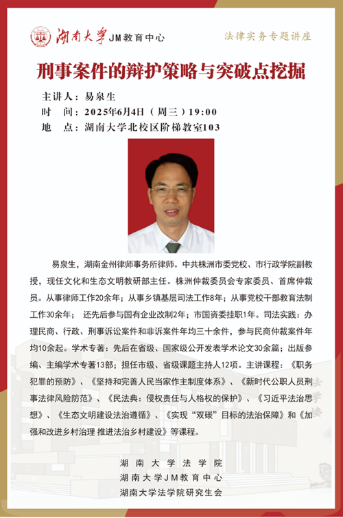 2025年6月4日晚七点,湖南金州律师事务所律师,中共株洲市委党校、市行政学院易泉生副教授,为大家讲述刑事案件的辩护策略与突破点挖掘,帮助大家了解相关实务问题。香香漫画