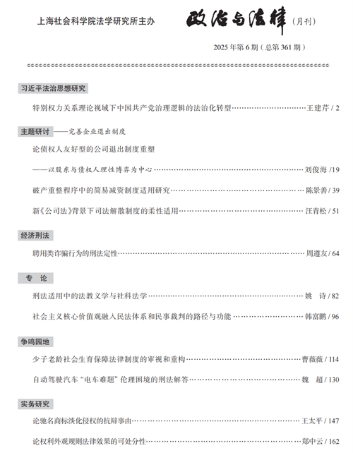 教授、博士研究生导师姚诗,在《政治与法律》2025年第6期发表论文——《刑法适用中的法教义学与社科法学》。