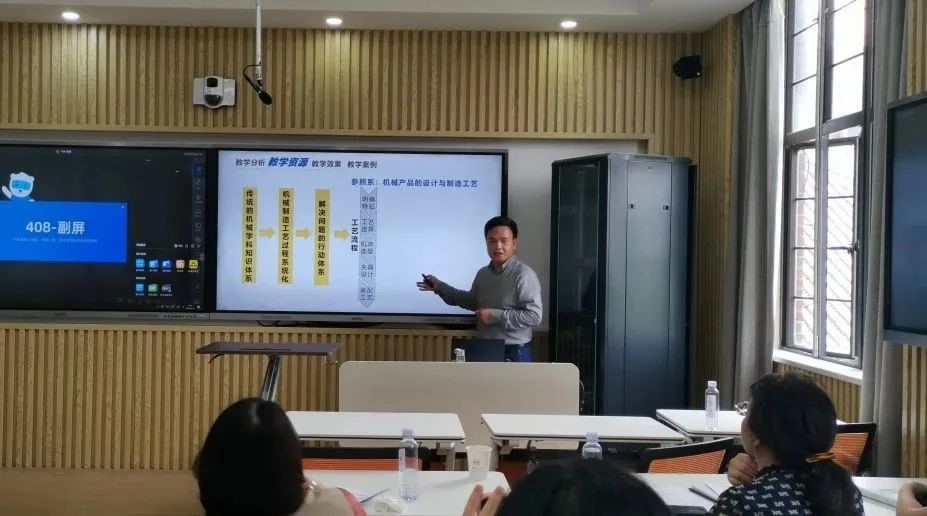 来自机械与运载工程学院的李茂君老师以“基于‘三重-四分’的《机械制造技术》信息化资源建设与运用”为题介绍了信息化教学在培养学生动手实践能力方面的有效运用。他首先从课程教学中存在的“结构抽象、工艺复杂、接触困难、形式单调”等痛点问题切入,从而重点阐释了课程教学中“重学习支架搭建、重润物细无声的价值引领、重线上线下互动拓展以促进能力养成”的教学理念以及“注重进阶式、体验式实践内容”的项目设计理念。