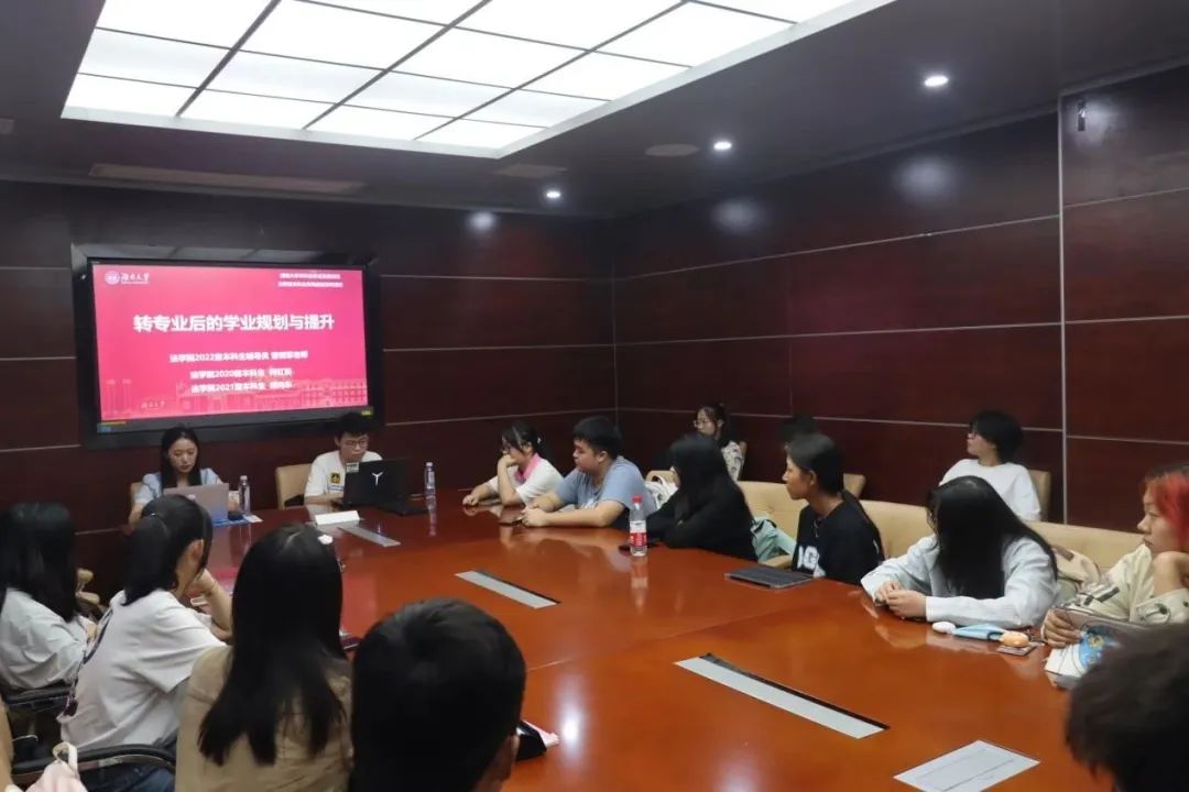 自由交流环节中,同学们踊跃提问,咨询了更多转专业后保研情况、课程修习、英语学习等内容,为转专业的同学拨云见日,助其深入了解法学这门专业。
