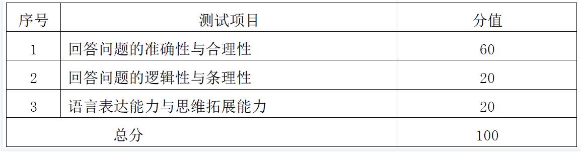 表1 学术型硕士研究生综合测试评分细则