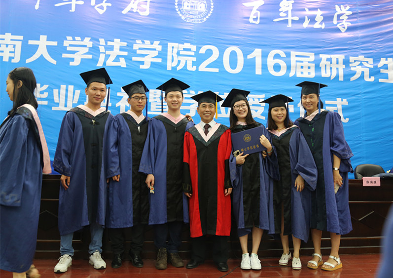 院长屈茂辉教授、院党委书记李连友教授、院党委副书记付蓉芬老师、副院长黎四奇教授、各系领导及硕士生导师、全体毕业生及部分毕业生亲属参加了毕业典礼,典礼由肖海军教授主持。