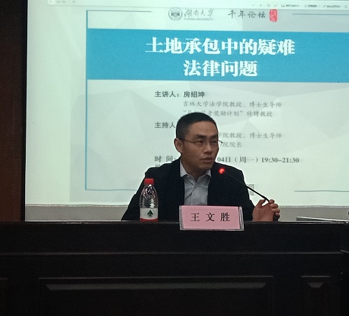 王文胜副教授进行了讲座点评和总结。他说,房绍坤教授从民法基本原理出发解释土地承包法,追求逻辑自洽,给我们带来了一场关于法律解释学的学术盛宴。这启示我们从事法律解释学,需要追求吾道要一以贯之,要清楚冷静的关注到政策文件与法律之间的表达,民法研究需要社会实践与基本原理的兼顾,追求逻辑自洽。本次讲座在热烈的掌声中圆满结束。