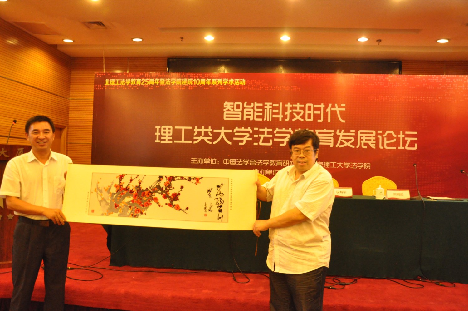 建院十周年及取得的法学教育成果表示祝贺,并赠送了湘绣。