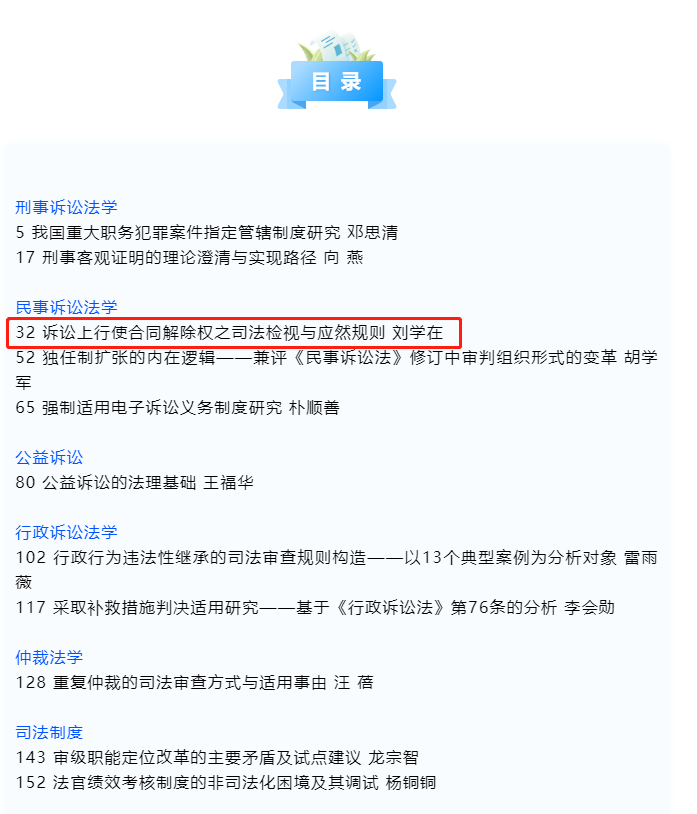 刘学在教授发表于《湖湘法学评论》2022年第1期的学术论文《诉讼上行使合同解除权之司法检视与应然规则》被中国人民大学书报资料中心复印报刊资料《诉讼法学、司法制度》2022年第9期全文转载,香香漫画