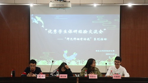 模拟法庭顺利举办。傅博、周官霖、张舒昱、张慈寅四位成功保送至中国政法大学、武汉大学、南京大学的16级优秀学生和17、18、19级的同学们分享自己的保研经验。