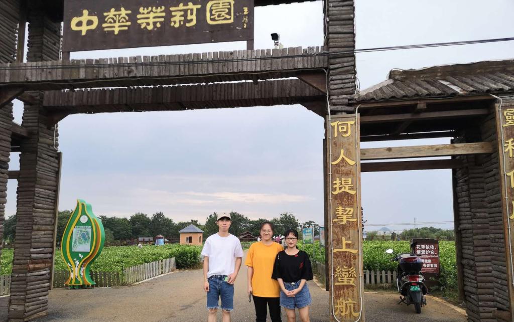 上午,实践团队前往中华茉莉园进行参观。园区坐落在广西横县校椅镇石井村连片茉莉花基地,始建于2007年。近年来,横县以中华茉莉园为核心,依托特色优势茉莉花产业,积极建设国家现代农业产业园和全国茉莉特色小镇,荣获了“国家重点花文化基地”、“国家3A级旅游景区”、“自治区级现代农业示范园区”等诸多称号。据统计,2019年全县茉莉主题旅游人次达502.21万人次,消费总收入达44.28亿元。