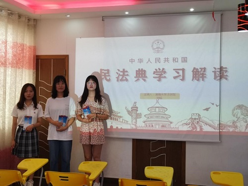 下午,实践团队前往射阳县经济开发区陈洋办事处,为陈洋的留守儿童们讲解《民法典》,发放普法宣传小册子。“你拍一我拍一,孩子学习是权利;你拍二我拍二,变相体罚不可取”,用儿歌、“你问我答”等的形式吸引孩子们了解法律知识。宣讲《民法典》时,团队同学还运用生活中常见的例子,帮助留守儿童更加充分地认识法律,使他们体会到法律与日常生活息息相关,提高了辨别是非的能力和自我保护的意识。