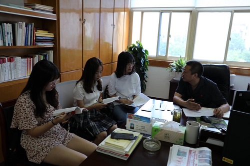 15日上午,实践团队来到射阳县人民法院。丁卫东副院长为实践团队的同学们介绍了射阳县“巡回审理,法润乡村”、普法大讲堂等普法宣传活动,简要分析了射阳县人民群众法律意识的现状。同学们聆听射阳县的法治建设情况,总结记录相关普法活动的经验。与此同时,丁院长对实践团队的普法宣传法案进行指导,提出了修改意见。