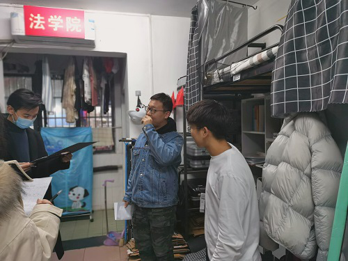 本科生辅导员郑琼英老师和美丽努尔老师、研究生辅导员刘岳峰老师以及院学生会、研究生会主席团成员、各年级年级长、各年级团总支书记走访学生宿舍,进行了严肃公正的宿舍卫生安全评比。