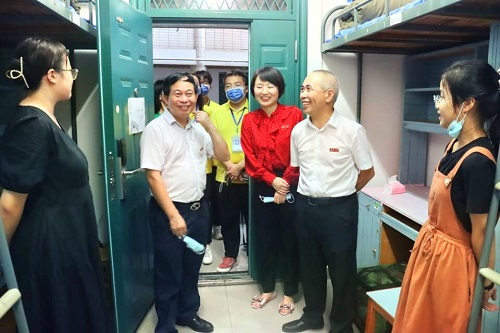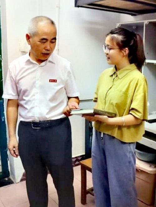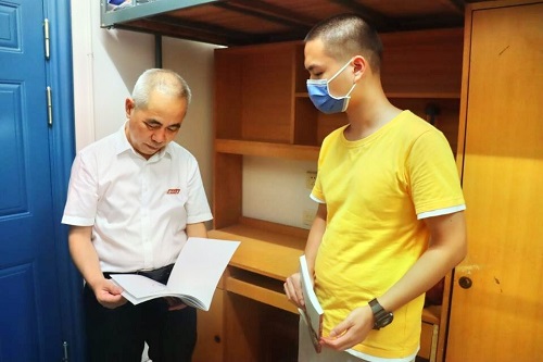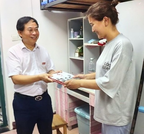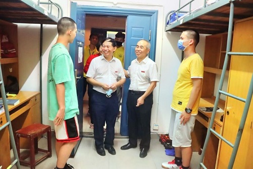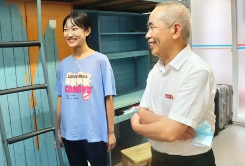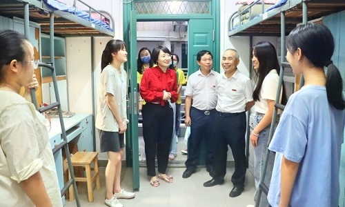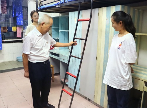 在新生宿舍,学院领导与新生亲切交谈。老师们仔细询问新生的来源地、对长沙的气候是否适应、食堂的饭菜是否合乎口味、宿舍的住宿条件、对法学专业的想法等。同时,院领导对新生的内务整理、军训的仪容仪表等方面提出建议。