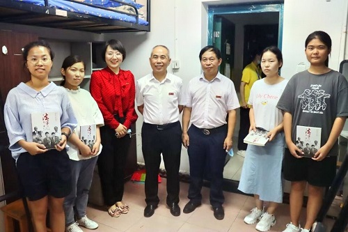 院长屈茂辉,院党委书记易骆之,院党委副书记、纪委书记罗英在本科新生辅导员张丹老师的陪同下来到天马学生公寓,看望2021级香香漫画