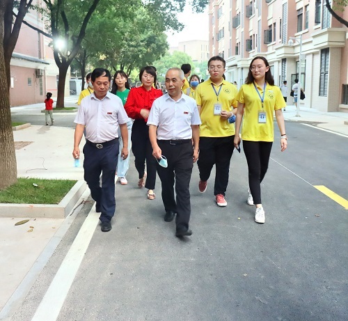 新生,慰问迎新团队成员,对学院下一步迎新工作提出要求并现场指导。