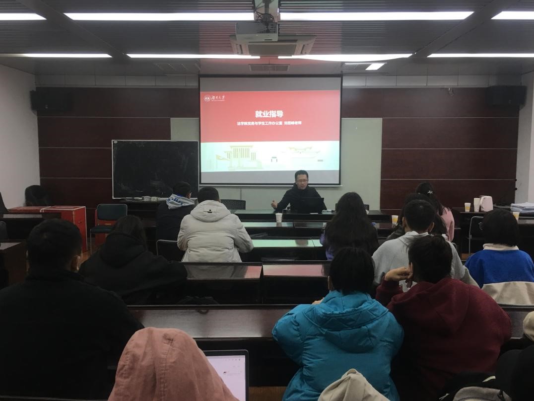 随后,刘岳峰老师为在场同学作了就业指导,强调面对就业要认真准备、勇于尝试、不断总结,并叮嘱同学们在就业期要留意学院辅导员老师所作的政策讲解和文件填写指导。