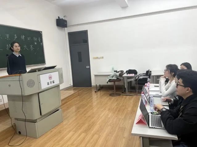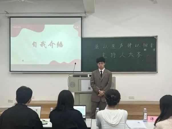 303教室举办“法以潆声,律以徊音”主持人大赛。本次比赛共有九名同学报名参加,包含7位本科生及2位研究生。为综合考察选手能力,本次比赛共设置四个环节,特邀请上一届主持人比赛选手担任评委,由评委点评选取男生组和女生组前两名为优胜者。