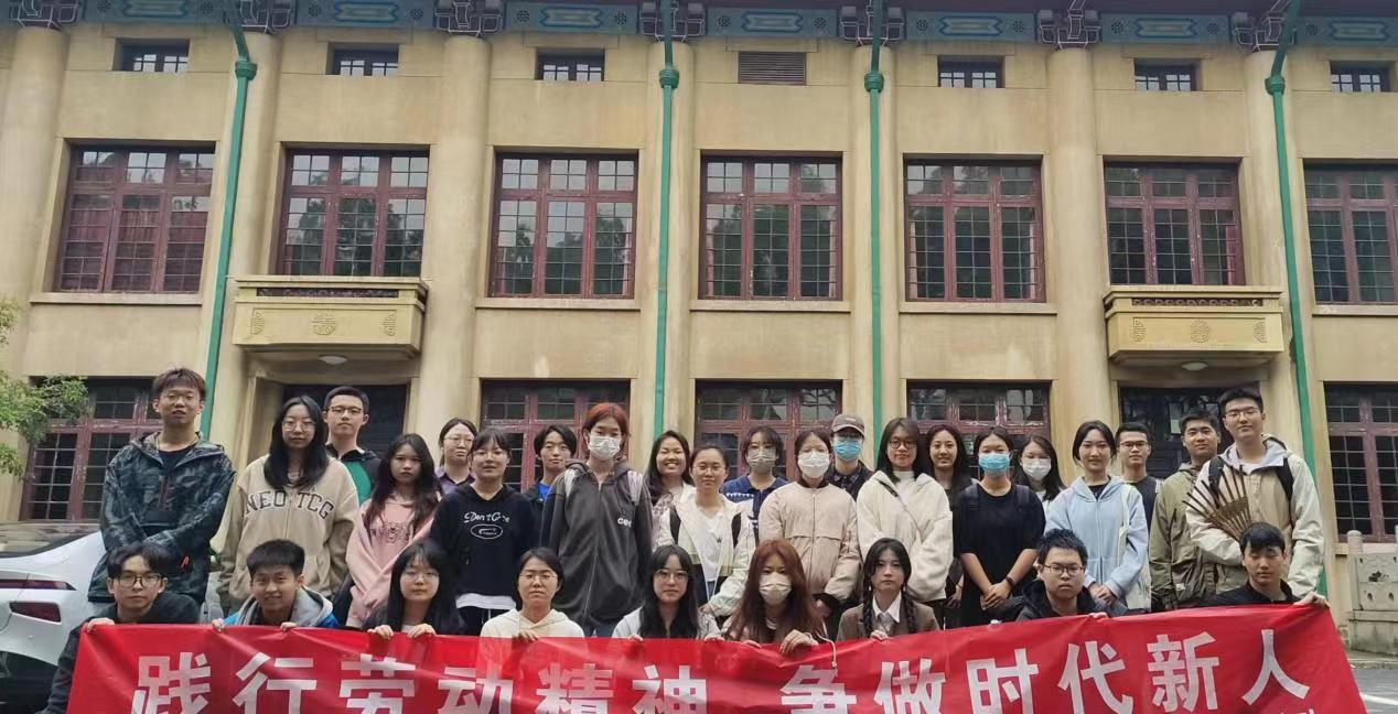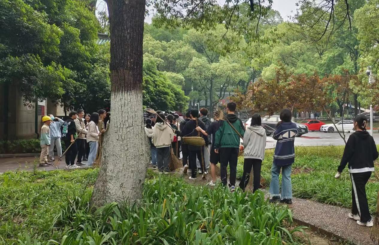 打扫结束后,参与此次活动的同学们有序排队交付劳动工具,然后在大礼堂前集合合影。