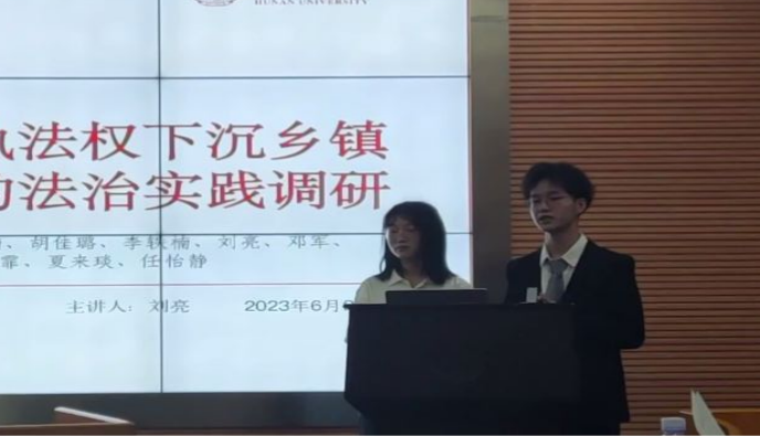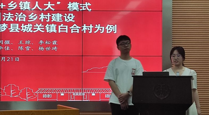 、工商管理学院、金融与统计学院等多个学院,且包含本硕博不同学历阶段的优秀学生。选题上,既包括显现专业特色的法治调研,同时彰显普通话推广、乡村振兴等社会命题。在答辩过程中,各组代表充分展示了其对于三下乡活动的理解、选题的原因、调研地的选择、计划实施的方案、暑期调研规划等内容。代表们向老师介绍了团队前期研究成果,并纷纷结合自身专业特色与各自地域优势,制定了实地调研规划。