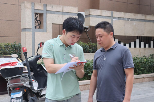 背灼天光,披星戴月,认认真真地做好实践调研并非易事。天气炎热,居民多在饭后晚间下楼散步,同学们两两成组,一人打着手电,一人拉着家常,更有热情的居民主动打听实践团的情况,积极填写调查问卷,畅谈自己在社区的生活体验。常有居民带着小朋友路过,被实践团备作小礼物的彩色扇子吸引,同学们也会笑着送上并附上发展新时代“枫桥经验”的宣传册。两天的实践调研,共计收得百余份问卷,每一份都密密麻麻地写满了居民群众的心里话。