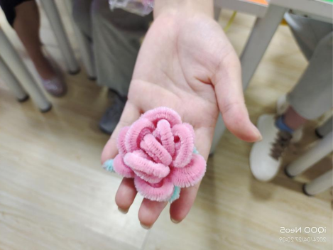 接近晚上20点整,活动进入了第二个环节:同学们纷纷选择自己擅长的或者喜爱的材料开始进行手工diy活动。大家大展身手,个个化身“大国工匠”,对自己手中的作品精益求精,力求让它呈现出脑海中的那副画面。制作现场热火朝天,毕竟,有什么能比亲手做出一点喜爱的物品更有成就感呢?面对着同学们手中的一个个色彩缤纷的花环,又有谁能想到它们原先只是一束笔直的扭扭棒呢?除去扭扭棒,选择了黏土和陶土的同学也做出了不少颇具创意的作品,譬如:能萌化人心的小怪兽、金光闪闪的摇钱树等。