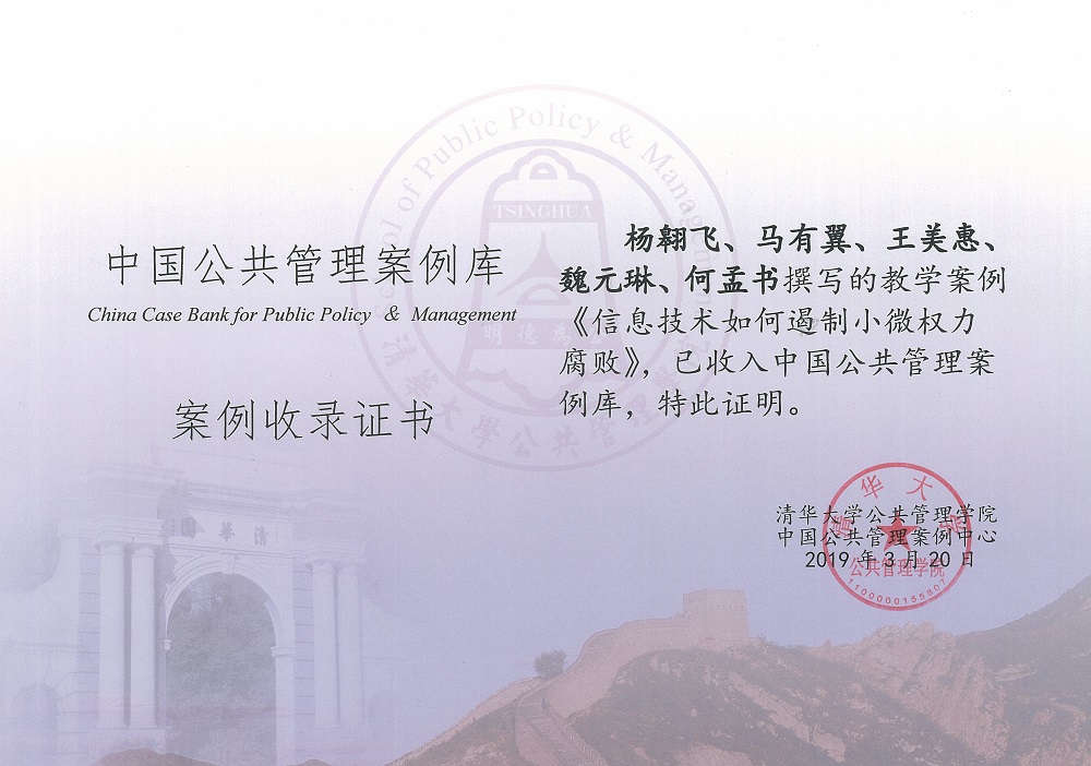 3月20日,由邬彬老师指导,2016级行政管理专业本科生杨翱飞、马有翼、王美惠、魏元琳、何孟书撰写的教学案例《信息技术如何遏制小微权力腐败——以湖南麻阳“互联网+监督”平台为个案》被中国公共管理案例库收录(案例编号:CCC-18-499),这是我校首次有本科生团队撰写案例被全国性公共管理案例库收录。