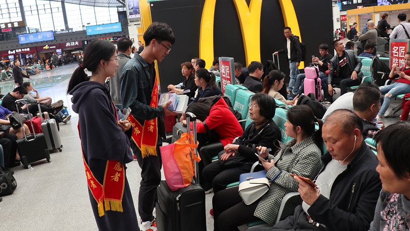 在高铁站工作人员的支持下,志愿者们还走进候车大厅向旅客讲解如何在消费过程中保护自身权益的实用知识。“我们在日常生活中遇到的维权问题实在是太多了,以前外出就餐时发现店家卫生不合格或者是有欺客行为时,我只会忍气吞声,现在我知道该拿起法律武器来维护自己的正当权益,”正在候车的王女士说道,并对此次普法活动表示了由衷地感谢。