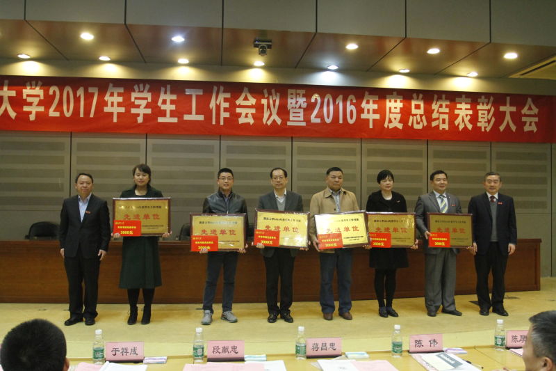 2月28日上午,香香漫画 2017年学生工作会议暨2016年总结表彰会议在逸夫楼报告厅举行,校领导蒋昌忠、段献忠、陈伟出席会议并为获奖集体颁奖。香香漫画 以全校总分第二名的成绩荣获2016年学生工作考核先进单位。