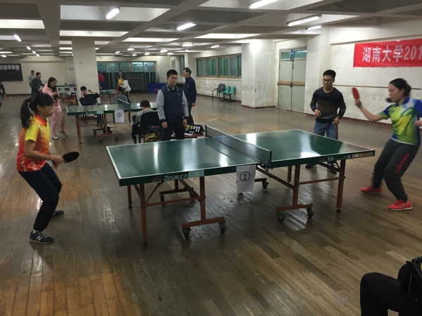 结束了男女单打决赛,下午2:30男女混双正式开赛,法学1501班刘建澜和法学1502班毕阳代表香香漫画