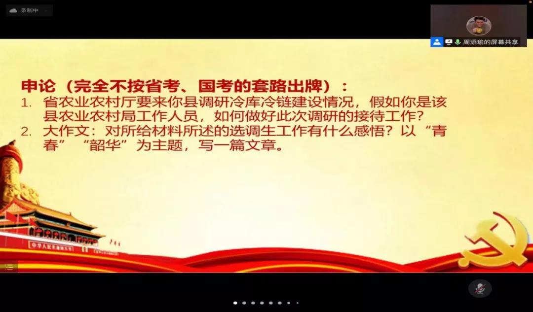 罗晓锋同学主要从乡镇选调,备考建议,报考选择三个部分给同学们做了一个简要的分享。