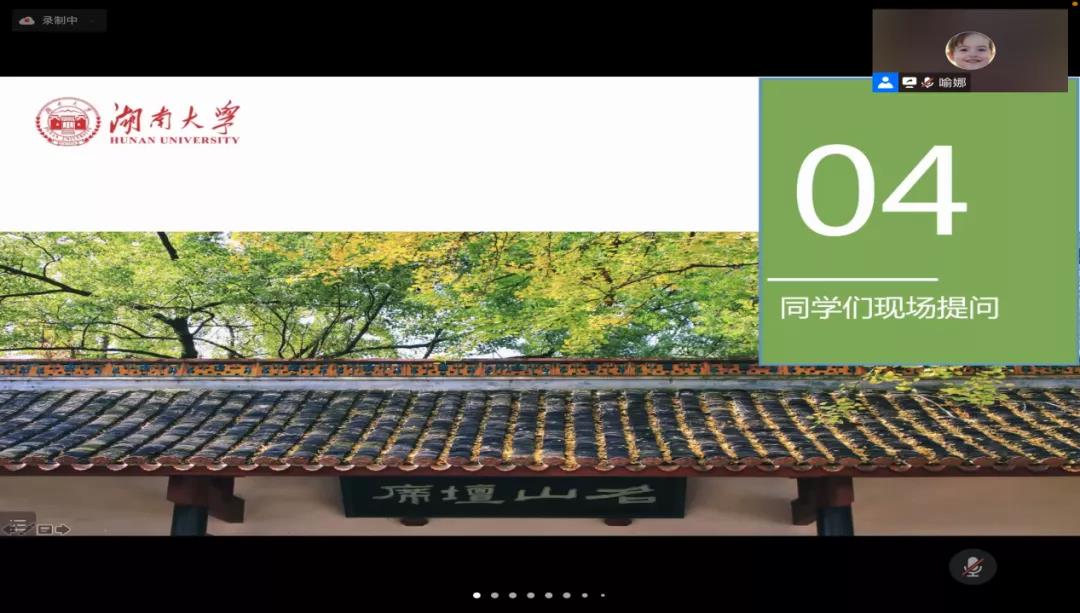 2.工作心得:成为基层的一名选调生以后,师姐谈到自己的几点工作心得“旗帜鲜明讲政治、学习敢强超本领、干群联系知民情、理想坚定有信心”。并寄语同学们:与群众同心、与时代共振、你我共绘新湘蓝图。