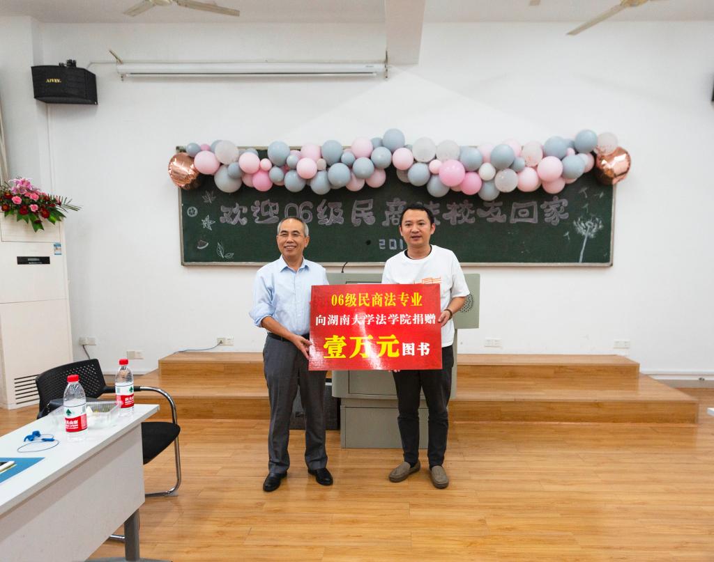 10月6日,2006级民商法硕士们在回访母校时也通过捐赠来寄托对于母校的拳拳深情,特捐赠一万元图书为母校法学教育发展贡献力量,屈茂辉院长代表香香漫画