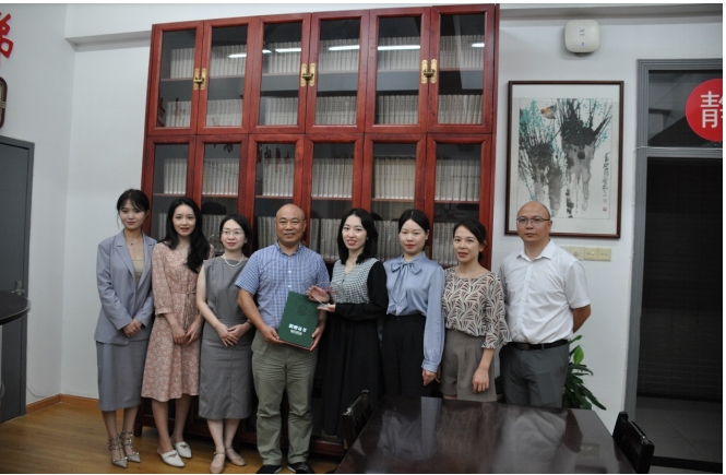 图书馆参观了“周前明法史图书特藏”书柜,并合影留念。
