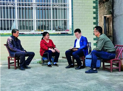 胡鹏(右二)和同事在群众家中开展调查走访