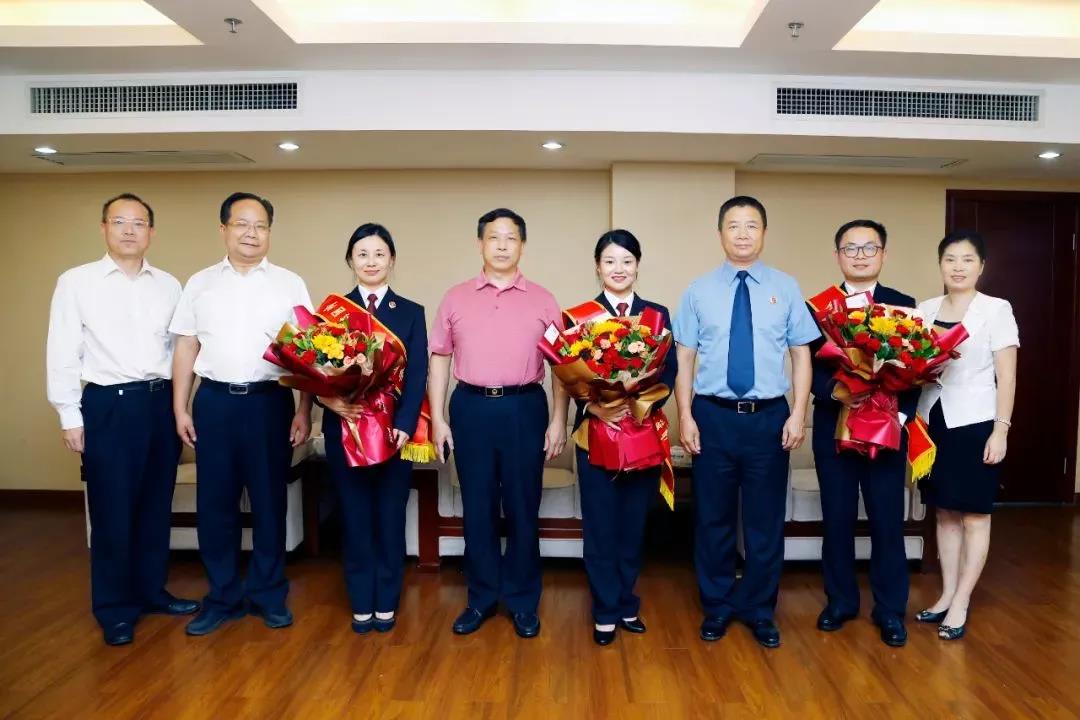 省检察院党组副书记、副检察长卢乐云,省检察院党组成员、副检察长刘建宽,省检察院党组成员、政治部主任谢运策接见了湖南省三位参赛选手并合影留念。