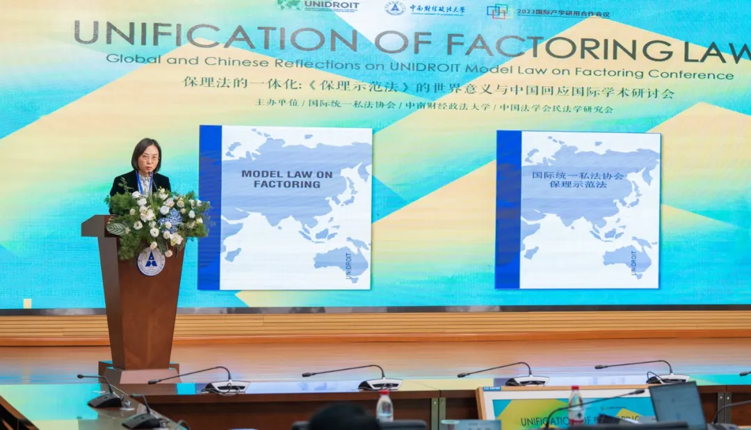 ▲2023年,国际统一私法协会《保理示范法》学术研讨会在中南财经政法大学举行。《保理示范法》中文译本发布。