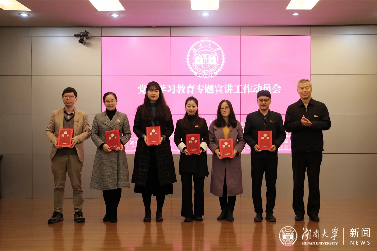 2021年4月8日上午,学校举行党史学习教育专题宣讲工作动员会,对学校开展党史学习教育专题宣讲工作进行动员部署。校党委副书记陈伟作动员讲话并为宣讲团成员颁发聘书。校党委常委、宣传部部长唐珍名主持会议并在岳麓书院开展“党的实事求是思想路线策源地”现场示范宣讲。