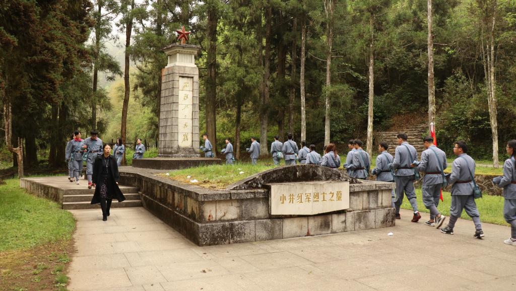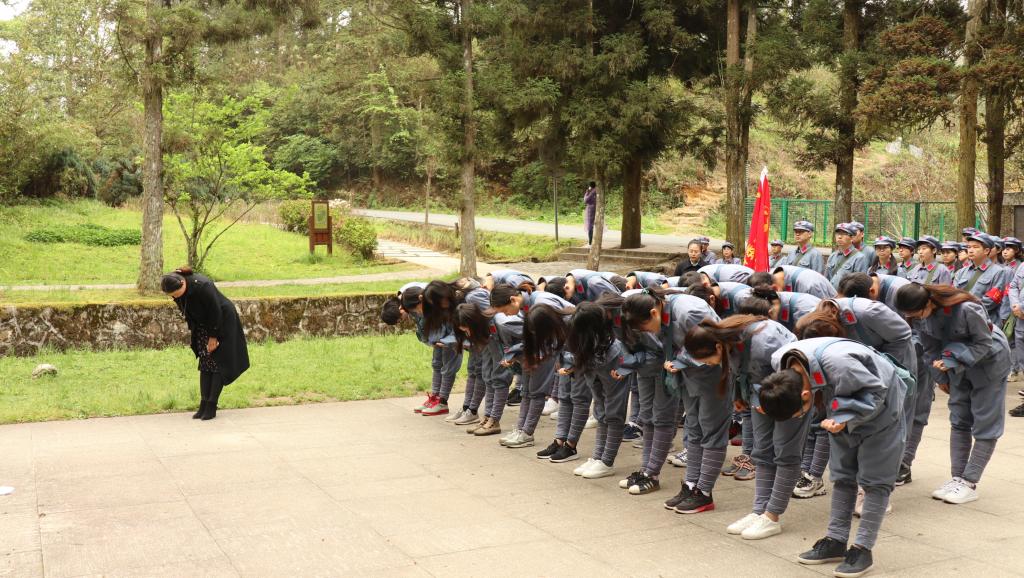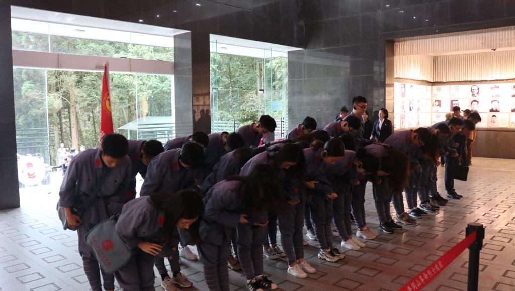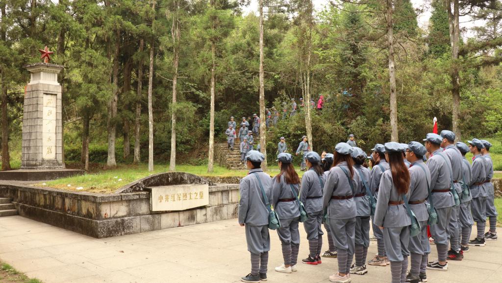 在小井红军烈士墓前,面对毛主席题词“死难烈士万岁”的纪念碑,学员们整齐列队,认真聆听授课老师讲述那段革命峥嵘岁月。“1929年1月,130多位来不及转移的红军重伤员为了严守党的秘密而被国民党反动派在此枪杀,从此忠骨长眠”。学员们在老师的带领下向革命烈士三鞠躬,表达对革命英烈的无限敬仰和哀思。