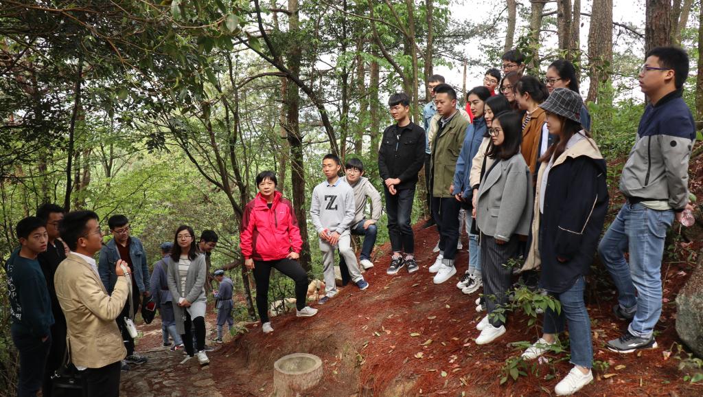 15日上午,培训班一行驱车沿盘山公路来到海拔一千多米的黄洋界哨口继续开展实地教学。黄洋界地处湘赣边界,是井冈山革命根据地五大哨口之一。1928年8月,著名的黄洋界保卫战在此打响。学员们先后来到作战壕、炮台、防御工事等遗址参观,并集体朗诵毛主席的《西江月·井冈山》。“‘山下旌旗在望,山头鼓角相闻’的井冈山时期,艰苦卓绝,物资何其匮乏,毛主席却将新领的棉衣赠予贫农御寒,自己只穿两层单衣;朱总司令与战士们一同挑柴担米,‘朱德的扁担’至今被人铭记。作为‘中国革命的摇篮’,井冈山光辉的斗争实践,生动诠释了‘中国的红色政权为什么能够存在’”,授课老师向同学们介绍了发生在井冈山革命斗争时期的感人故事,带领学员们体验挑梁小道,教育同学们要传承宝贵的井冈山精神。