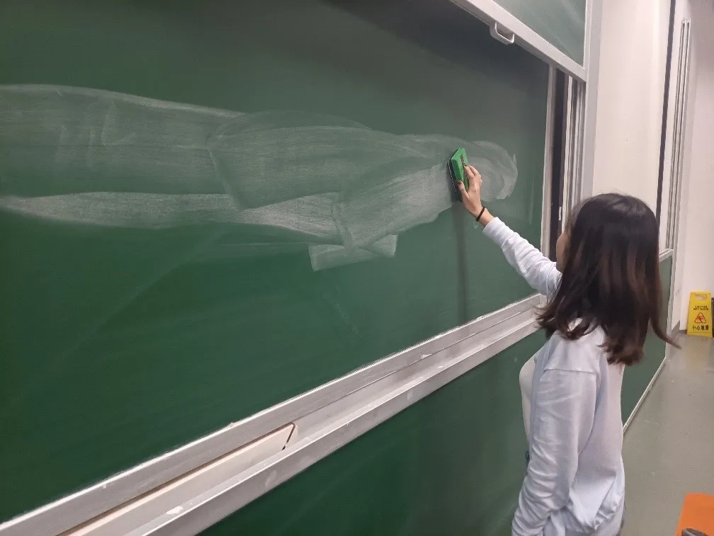 考虑到研究生上课教室不固定、课间教室无人打扫等问题,为了给广大同学塑造一个更好的课堂环境,党支部号召学生党员在课间主动为老师整理讲桌、擦黑板。整洁的教室环境令人心旷神怡,使同学们能更好地投入到学习中区。