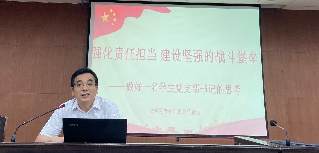 马启明老师做了一场题为“强化责任担当,建设坚强的战斗堡垒——做好一名学生党支部书记的思考”的培训。马老师从要想做好一名支部书记,必须解决好思想认识问题、干什么的问题、怎么干的问题入手,对支部书记的工作职责及如何开展工作做了详细的讲解。他指出,党支部书记作为党基层组织的“领头羊”,在党支部的建设中起着举足轻重的作用,应当按照习近平总书记的要求做“政治上的明白人、党建工作的内行人、干部职工的贴心人”,在工作中时刻把握正确的方向、坚持党性原则、正确处理好学习与工作的关系、履职担当勇于尝试创新,建设一支坚强的队伍,充分发挥战斗堡垒作用。