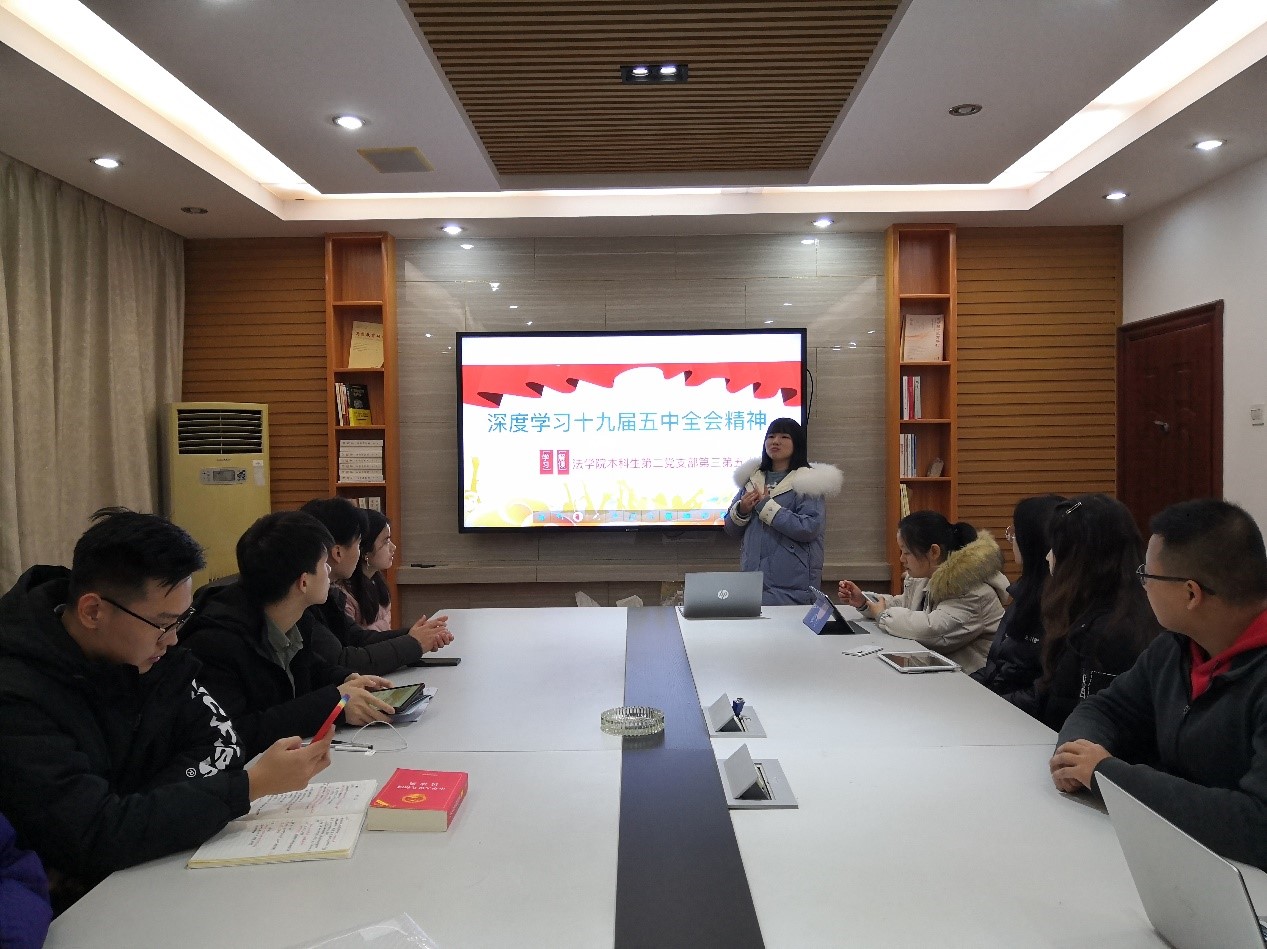 第一党小组、第二党小组成员联合开展线上主题学习会议,共同观看党的十九届五中全会系列视频,讨论并分享各自的学习感悟;其余党小组则在学工部党员活动室联合开展党小组会议共同学习了十九届五中全会精神。各党小组成员积极参与,并分享各自的学习感悟。