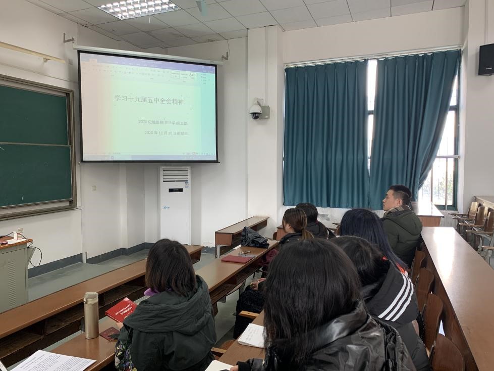 首先党支部书记杨扬发言,对党的十九届五中全会会议召开的背景、时间、地点、主要议题和精神内涵做了一个简要的介绍,指出此次会议既有对过去成功经验的总结又有对未来前进路途的展望。实践证明,以习近平总书记为核心的党中央不忘初心,牢记使命团结带领全党各族人民砥砺前行、开拓创新,战胜各种风险挑战,中国特色社会主义的航船继续乘风破浪,砥砺前行。会议上高度评价全面建成小康社会取得的决定性成就,同时也提出了到2035年基本实现社会主义现代化远景目标,也提出了“十四五”时期经济社会发展指导思想和必须遵守的原则。在这个过程中必须要坚持党的领导、人民当家作主、依法治国的有机统一,为建成富强民主文明和谐美丽的社会主义现代化强国不断奋斗。