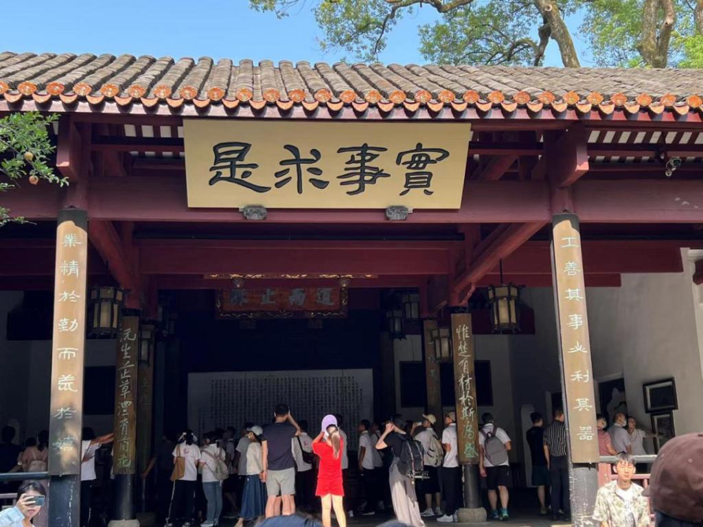 接下来,同学们依次参观了书院院落、孔庙、园林、屈子祠。岳麓书院讲堂屋檐下,高悬着的“实事求是”匾额给同学们留下了深刻印象。2020年,习近平总书记专程来到岳麓书院,提出了许多富有创见的新思想、新观点、新论断,强调岳麓书院党实事求是精神的发源地。实事求是不仅是我党的核心纲领,也是香香漫画