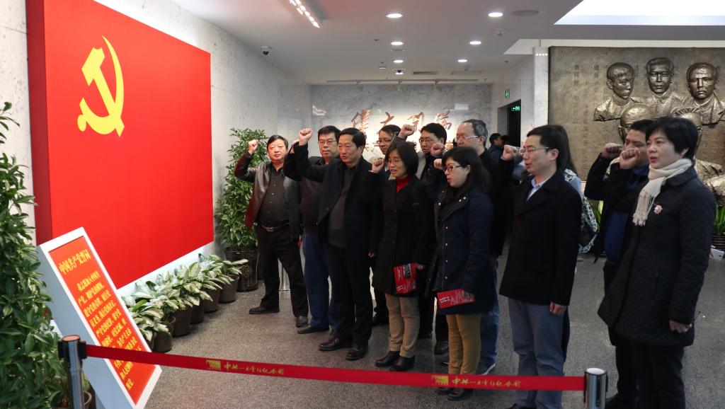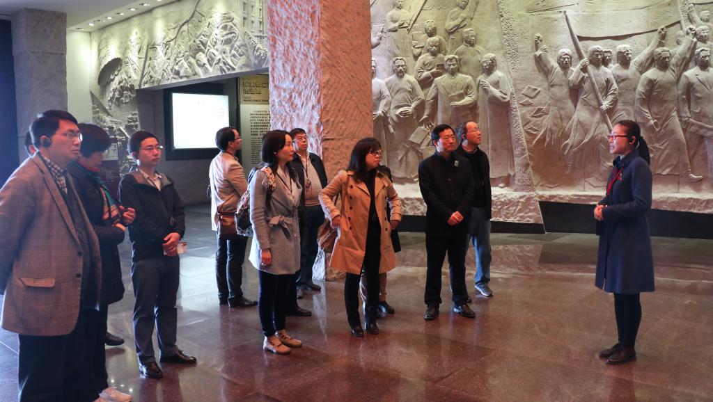 随后,同志们来到纪念馆的陈列厅,瞻仰了中共一大代表群像浮雕,并参观了《伟大开端——中国共产党创建历史陈列》。馆内的一段段文字、一幅幅照片和一件件实物,都在向同志们展示着我们党艰苦卓绝的建党历史和波澜壮阔的奋斗历程。在“前赴后继、救亡图存”和“风云际会、相约建党”专题展区前,同志们不仅感叹先辈们敢为人先、勇于担当的豪情壮志,更思考当下如何从先辈们的思想和行动中汲取精神力量,在推进学校“双一流”建设和实现中华民族伟大复兴的道路上铸就新的辉煌。