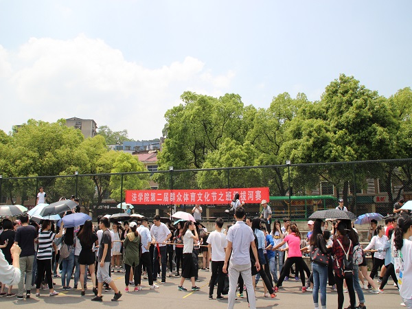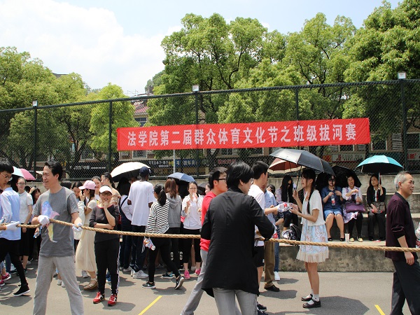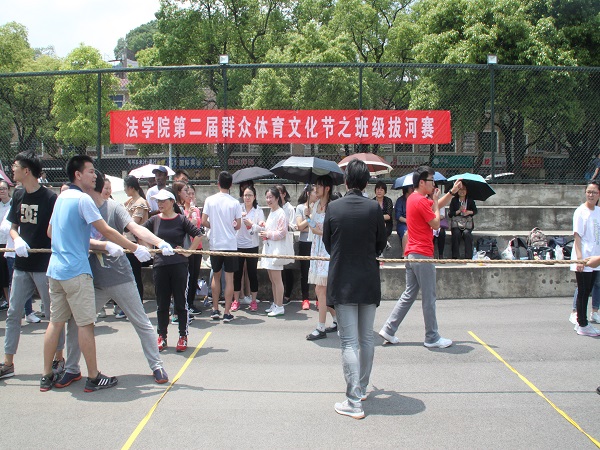 第二届群众体育文化节之班级拔河比赛在研究生楼操场火热进行。院长屈茂辉、党委副书记、副院长付蓉芬与学院部分教职工、各班级班主任、2015和2016级全体本科生参加了比赛。