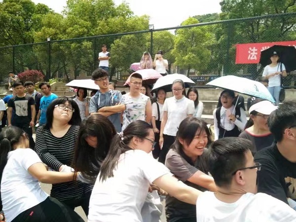 随着一声清脆的哨响,比赛正式开始。只见参赛的队员们个个摩拳擦掌,紧握长绳,卯足了力气。未参赛的同学们都自发组成啦啦队为比赛队员呐喊加油,此起彼伏的哨子声、呐喊声将整个比赛推进高潮。