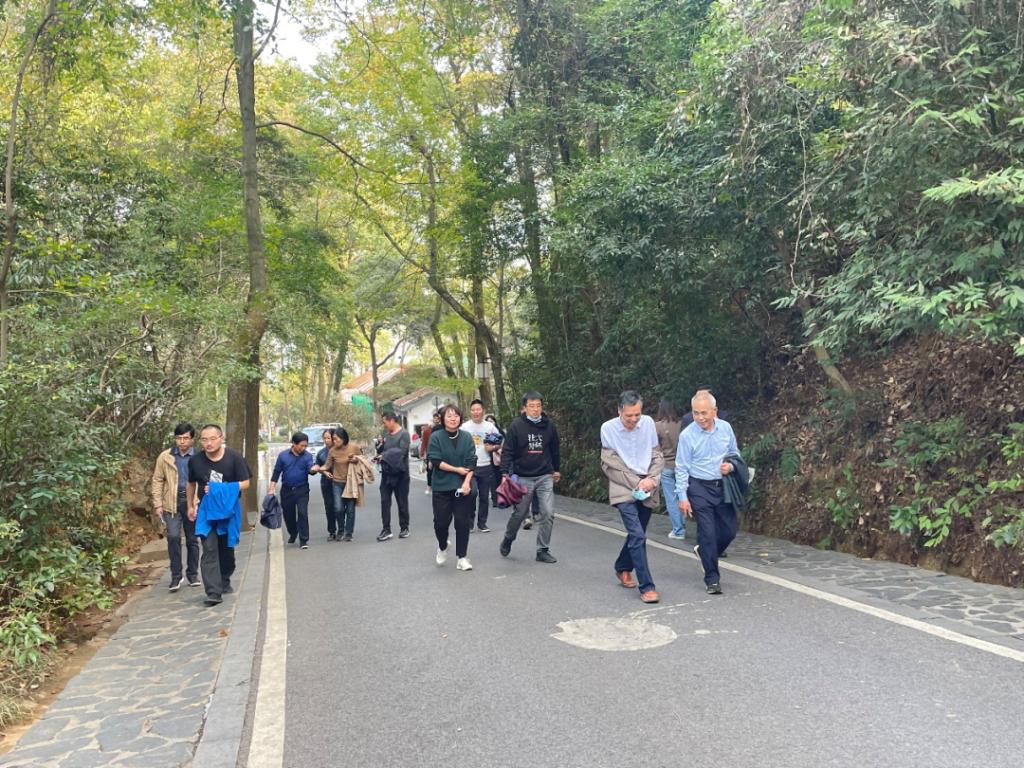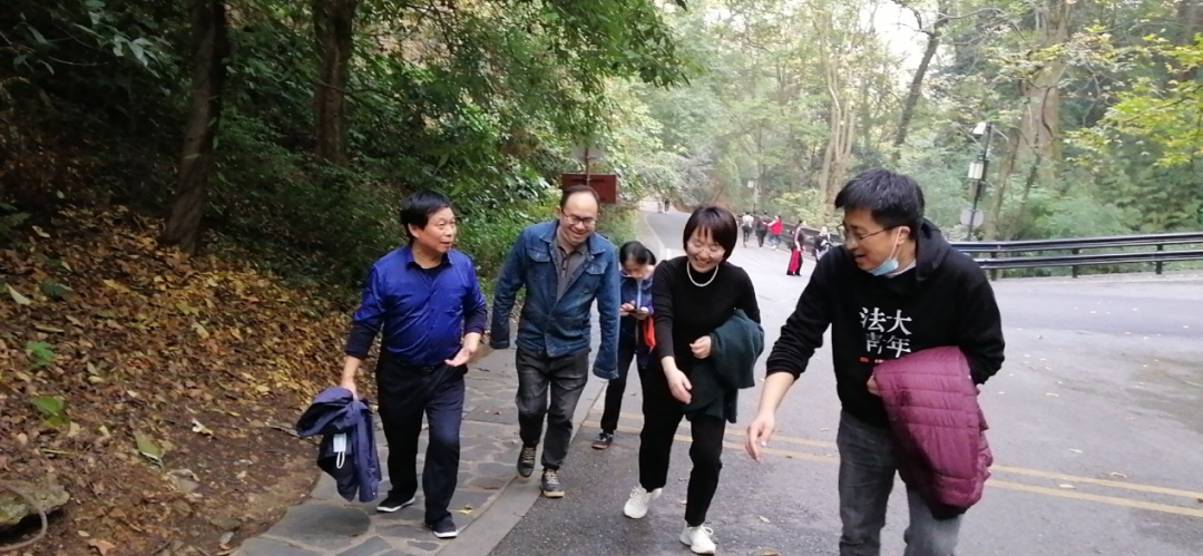 职工在学院门口合影留念后,一同往岳麓山脚走去。登山过程中,老师们热情高涨,兴致勃勃,大家或健步快走谈笑风生,或稳步前行合影留念,或你追我赶向上攀登。欢快的步伐是沿途的一道靓丽风景线,大家一路上欢声笑语、相互帮扶,战胜了步步相连的阶梯和长长的陡坡,战胜了身体的疲劳,只寄情于山水景色中,尽情享受着登山的乐趣。