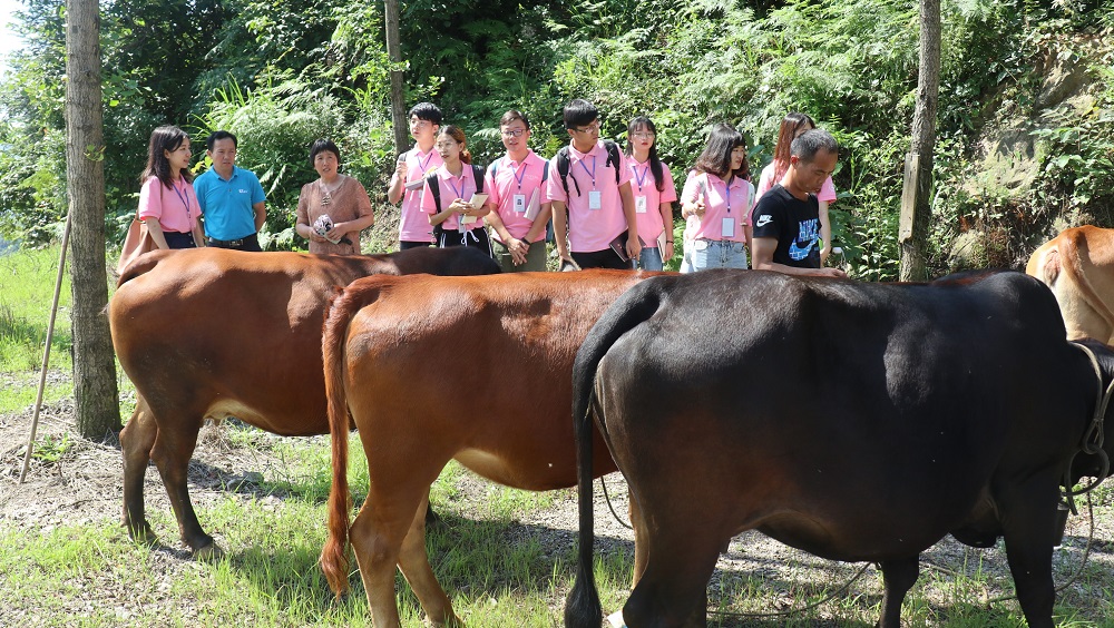 7月2日上午,团队到达三家馆乡。在与乡党委周琴书记亲切交流后,团队跟随农业技术站周文站长,前往晓村参观当地扶贫帮扶产业。在晓村,团队的同学们通过妇女主任周旭香的介绍,了解到当地养殖业的基本情况。乡政府因地制宜,充分发挥村干部的能动性,结合养殖产业基础优势与养殖文化优势,着手开发“斗牛场”等特色养殖旅游、创新家牲销售方式,助力乡村经济发展。随后,同学们前往晓村“养殖大户”,参观湘西黄牛、藏香猪养殖厂,并了解到在乡政府、村委会与村民的共同努力下,晓村养殖业飞速发展,已完成全村脱贫的目标。