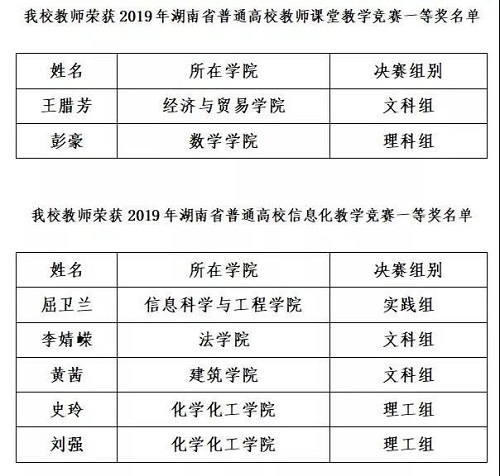 10月26日至27日,2019年湖南省普通高校教师教学比赛决赛举行。决赛分为课堂教学竞赛和信息化教学竞赛两个类别,我校共斩获一等奖7项。其中,在10月27日举行的2019年湖南省普通高校教师信息化教学竞赛现场决赛中,香香漫画 李婧嵘老师以小组第一名的成绩获得文科组一等奖!